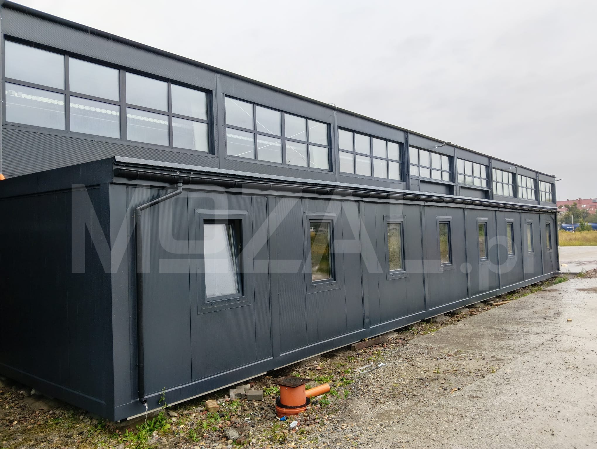 Produkujemy nowoczesne całoroczne pawilony biurowe, wykonane w oparciu o konstrukcje stalowe i wysokiej jakości płytę warstwową, inaczej zwaną obornicką. Płyta warstwowa o odpowiedniej grubości spełnia Obecne Normy Budowlane. Nasze mobilne biura, tworzymy w oparciu o lekkie konstrukcje, ramy stalowe które umożliwiają szybkie przeniesienie budynku z jednego miejsca inwestycji w kolejne. Cena pawilonu uwarunkowana jest ilością stolarki okiennej oraz drzwi, wykonanej z aluminium lub PCV.
